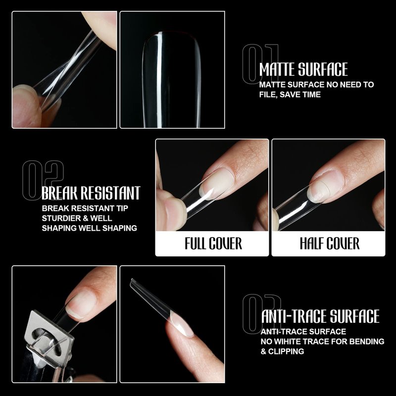 - ★Professional Nail Tips with No Trace: The fake nails are gelly soft tips and will make no trace even bend, bright clear you can more easily press, trim, and paint flat false nails to make your dream nails shape. Real DIY manicure gel tips.