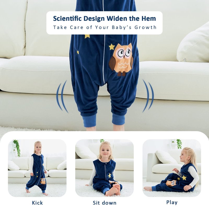 MICHLEY Baby Sleeping Bag Sack with Feet Autumn Winter Swaddle Wearable Blanket Sleeveless Nightgowns for Infant Toddler, 1-3T, Dark Blue Owl