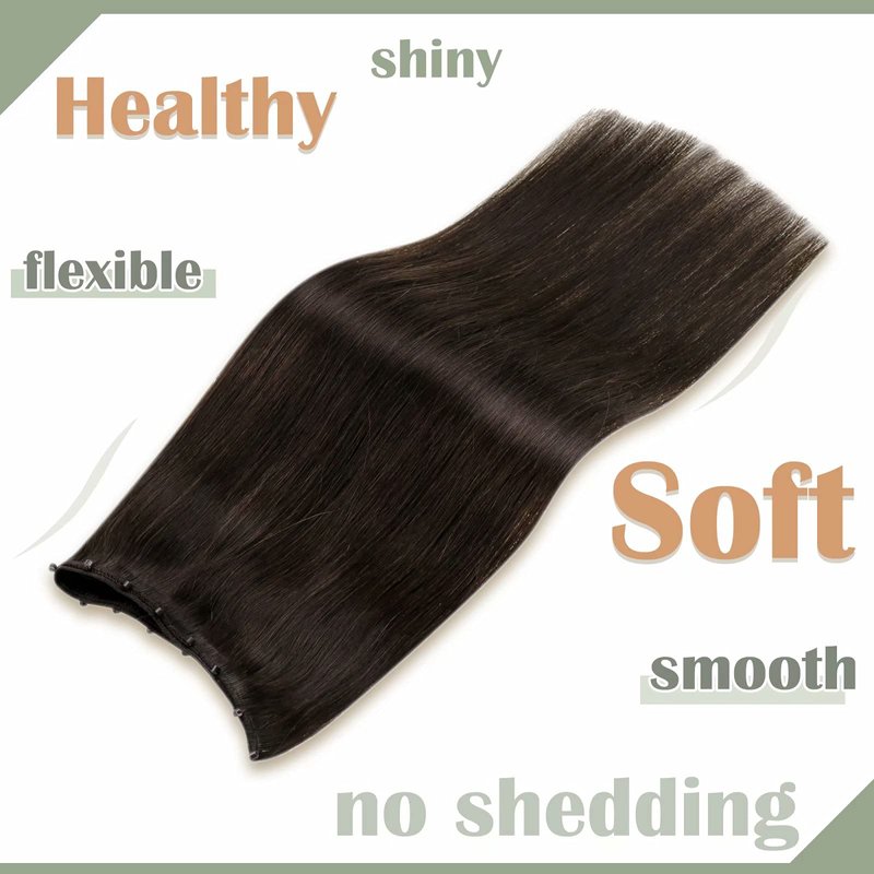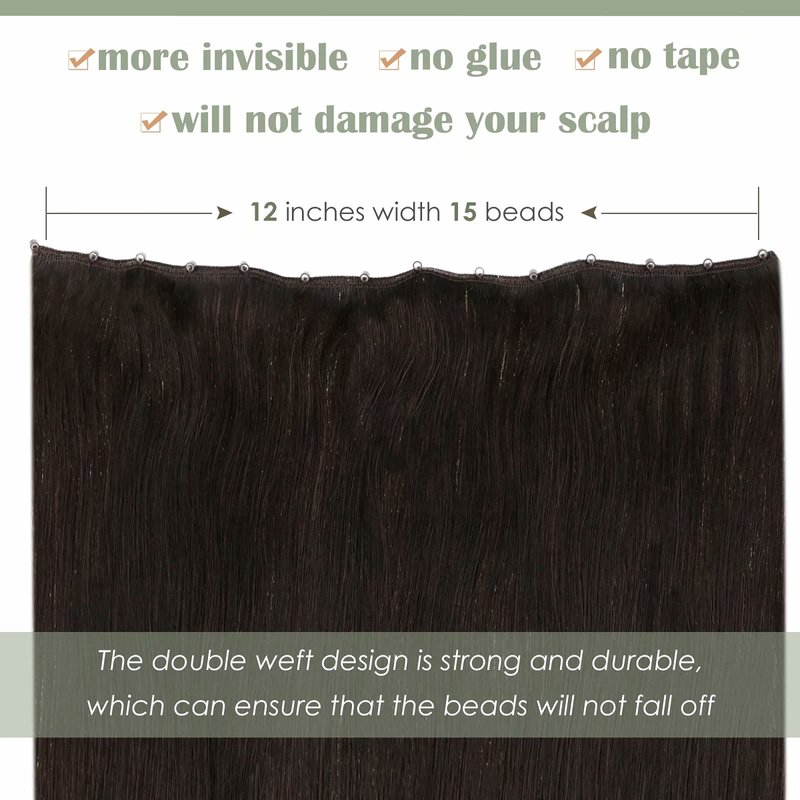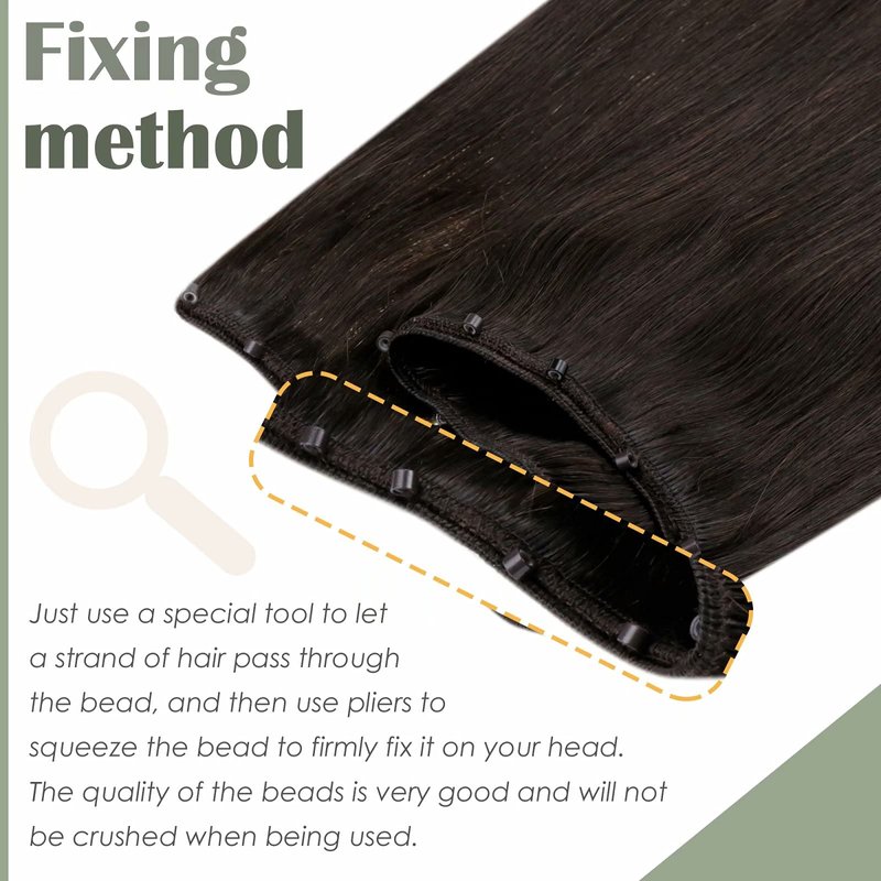 LaaVoo Micro Ring Beaded Human Hair Weft. The hair does not need any glue, weaving, clip or tape. The hair is very invisible as long as you wear it in the right way.