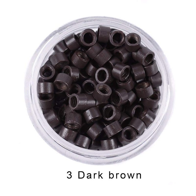 Micro Crimp Beads Screw Micro Rings beads Tube Aluminum microlinks Hair Beads 4.0MM 1000Pcs/Bottle for I-tip hair extension hair tools (Dark Brown (1000p))