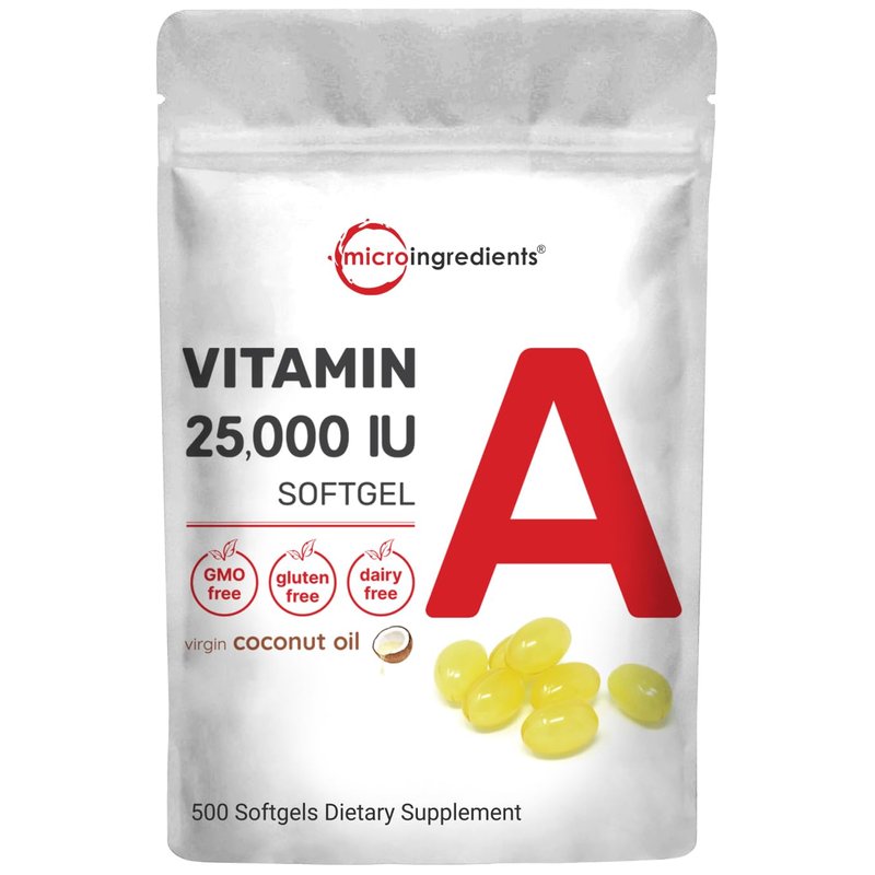 - Micro Ingredients offers high potency vitamin A softgels infused with a healthy coconut oil carrier for max digestion and absorption. Comes in easy-to-consume mini softgels that provide top grade vitamin A as retinly palmitate.