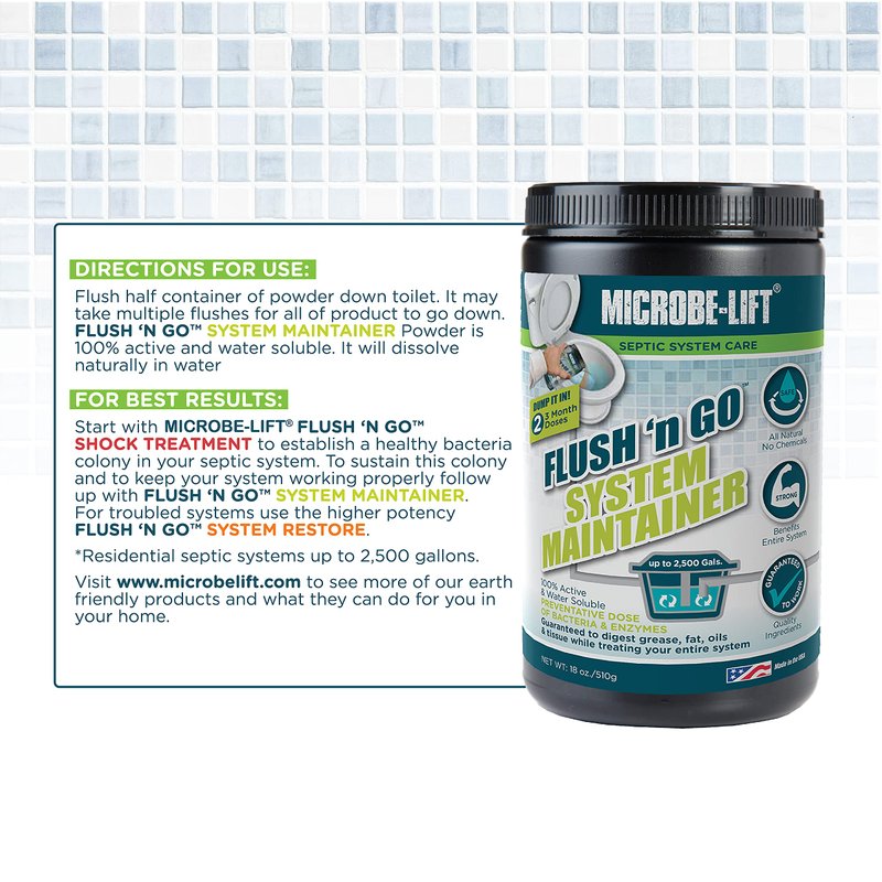 - FOR THE BEST RESULTS - Start with the MICROBE-LIFT Shock Treatment which establishes a healthy bacteria colony in your septic system. To sustain this colony and keep your septic system working properly, follow up with the Microbe-Lift System Maintainer. For troubled systems, use the higher potency System Restore.