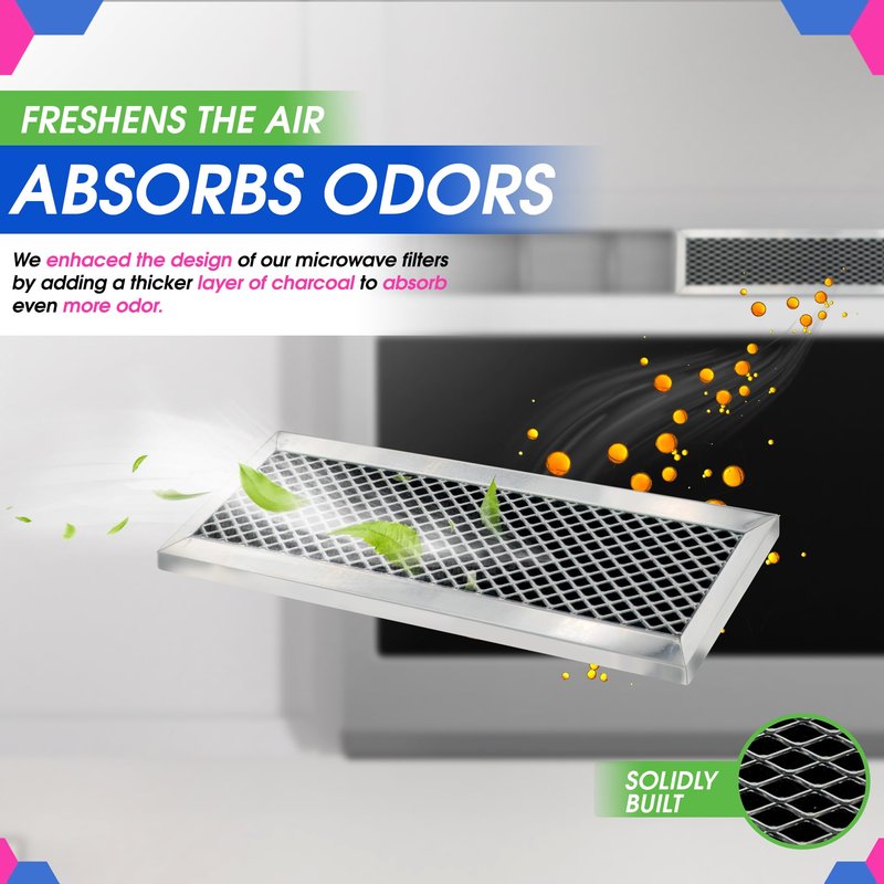 - FRESHEN THE KITCHEN AIR: This microwave hood vent filter is a charcoal filter for microwave and absorbs odors through the activated charcoal layer which is a natural odor eliminator.