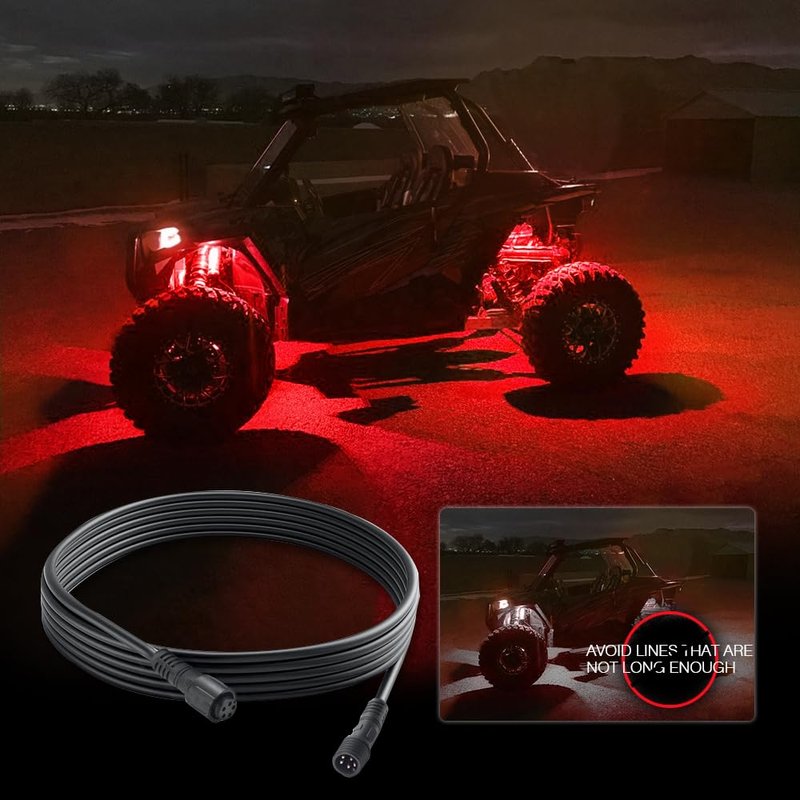 - Easy to install, plug and play: Keep your circuit safe by replacing the worn out cable of led rock lights. Fit for Motorcycle, ATV, UTV, Off Road Truck, Pickup, Boat, Dome, etc.