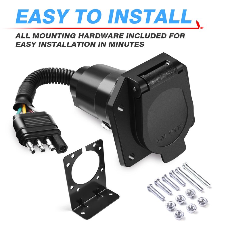 - Make the Wiring Easier - Plug and play, convert the car's 4-pin flat socket to the 7-pin blade round socket for the trailer, synchronize the trailer's signal light, and customize the plug-in wiring system to connect the trailer, which is very convenient and solves the trouble of rewiring every time