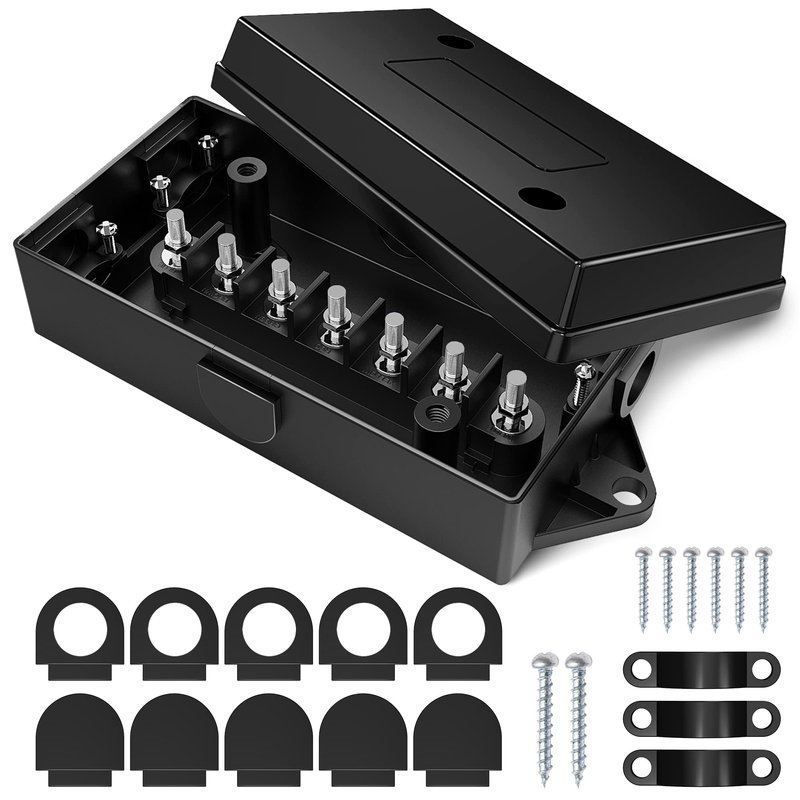 - TIDY TRAILER WIRING - A sturdy 7-Port Trailer Junction Box with seven terminal studs provide a fast and easy way for wires connection, keeping all your trailer wiring in order