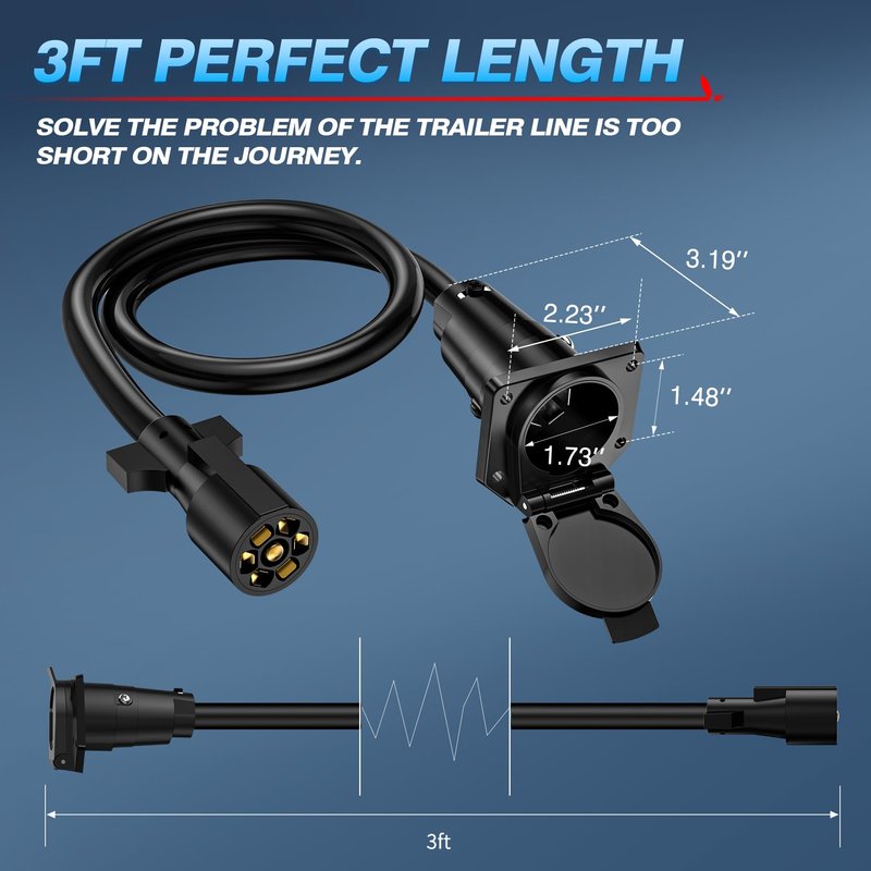 - Perfect Length - With a perfect length of 3ft, it's easy to solve the problem of the trailer line is too short on the journey, easy to connect your trailer to your car