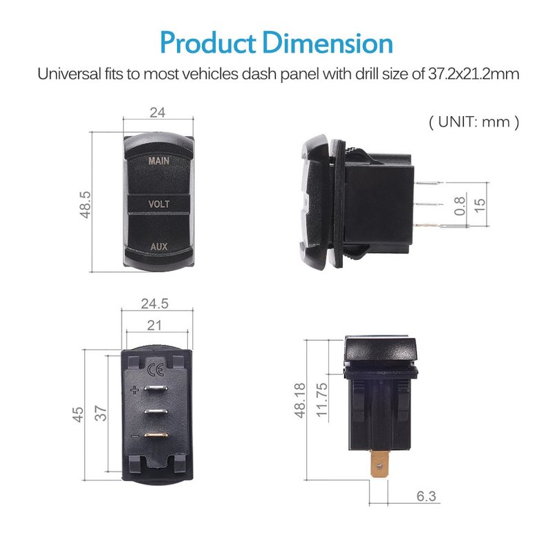 - Panel Flush Mount and Easy to Install, with drill size of 1. 46"x0. 83", universal fits to most factory reserved dashboard switch locations