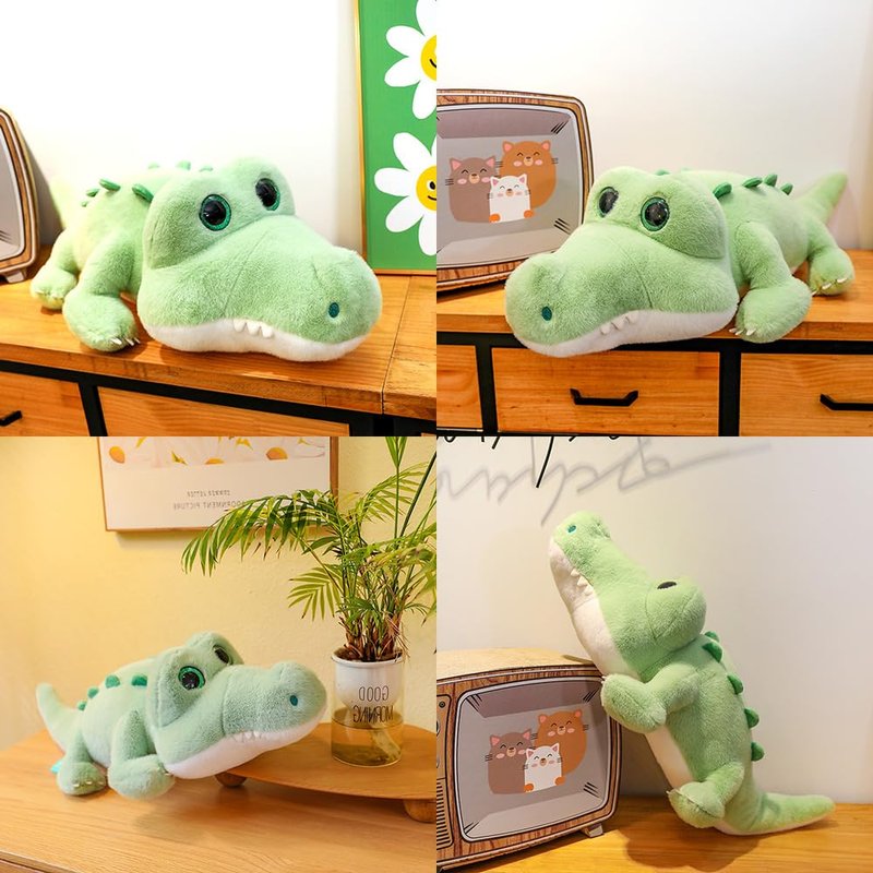 This crocodile plush pillow makes the perfect companion for both children and adults. Its soft and cuddly fabric allows for hours of hugs and snuggles. The realistic details like scaly skin and toothy grin bring this crocodile to life, sparking imagination and play. Whether curling up for a cozy nap or providing comfort during long travels, this stuffed animal friend is always there to help ease worries and bring a smile.. Durable material and careful stitching ensure it will withstand countless adventures. Give the gift of comfort and joy with this crocodile plush pillow, suitable for birthdays, baby showers, holidays or any day more smiles are needed.