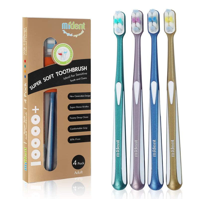 - 【10000+ Super Soft Bristles】With more than 10,000 super soft bristles, our Micro-Nano toothbrush is specially designed for hypersensitivity. Mident extra soft toothbrush has 0.01mm slim tip bristles which can pierce the deepest part of your teeth fight tartar, plaque and food residue. These ultra soft toothbrushes can clean your teeth deeply without damaging or hurting your sensitive gums.