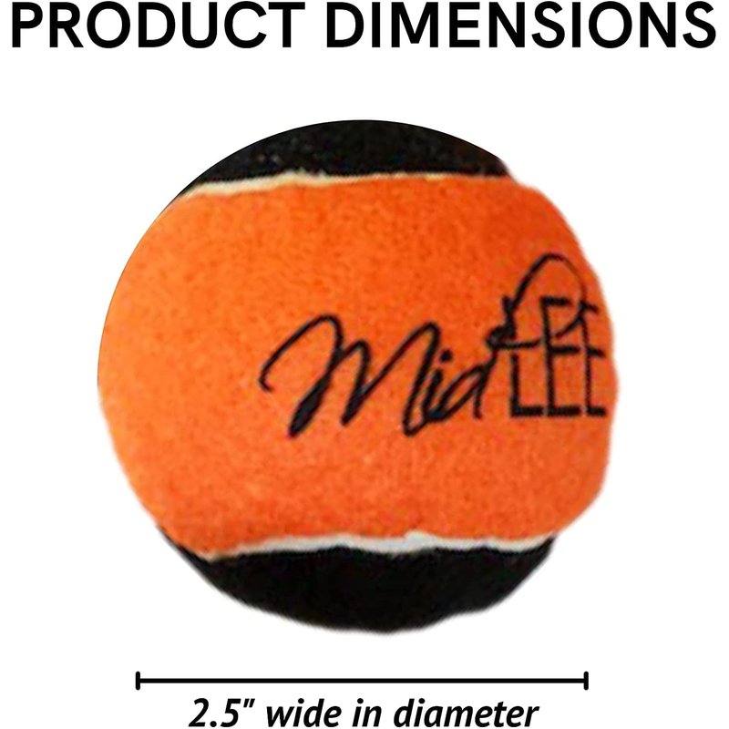- The Midlee Orange/Black Dog Halloween Tennis Balls- Set of 6 are standard-sized Halloween-themed dog tennis balls.