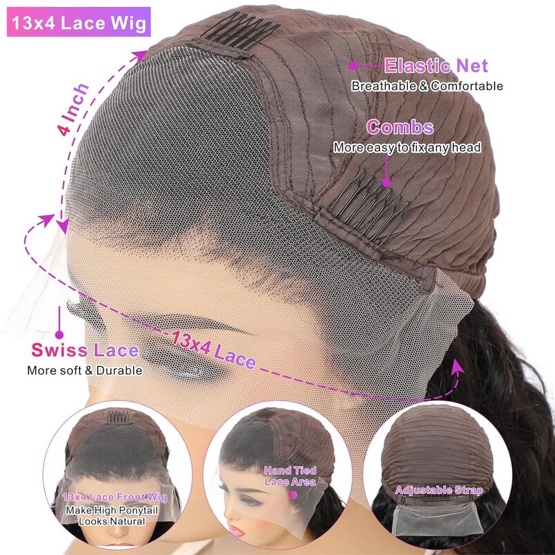 - Hd Transparet Lace Front Wig Cap Size:13x4 Deep Wave Lace Front Glueless Wigs Human Hair Uses Best Swiss Hd Transparent Lace,Soft and Breathable,Invisible,Suitable for All Skin Colors ,22.5"(Average Cap),Fit for Most Women,4 Combs To Fix on Head,Two Adjustment Straps Can be Adjusted to Different Head Sizes,Giving You a More Comfortable Wearing Experience.