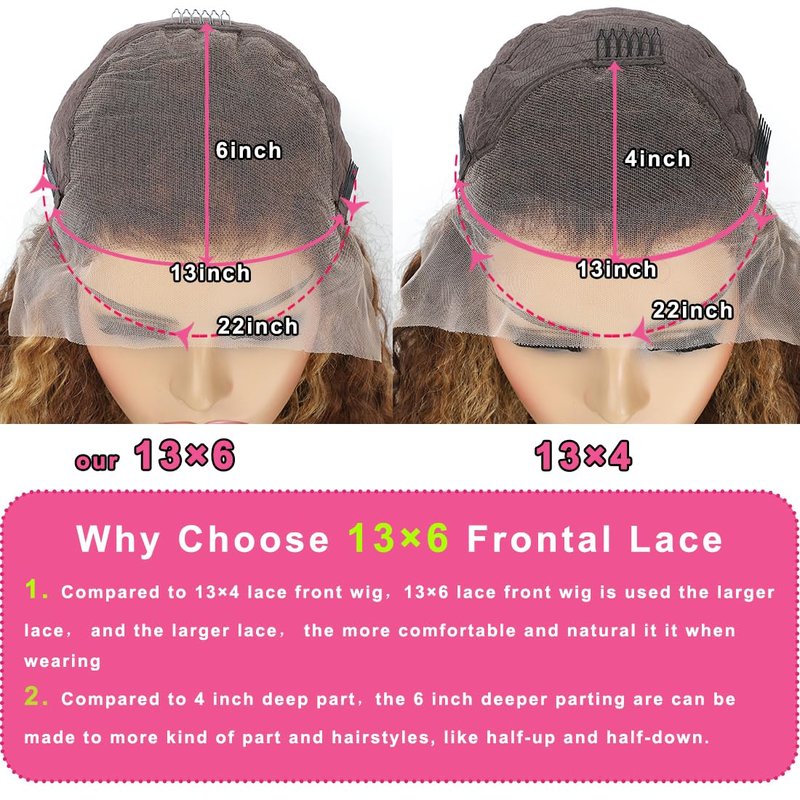 - ❤️Ombre Highlight Hd Transparet Lace Front Wig Cap Size:13X6 Deep Wave Lace Front Glueless Wigs Human Hair Uses Best Swiss Hd Transparent Lace,Soft and Breathable,Invisible,Suitable for All Skin Colors ,22.5"(Average Cap),Fit for Most Women,4 Combs To Fix on Head,Two Adjustment Straps Can be Adjusted to Different Head Sizes,Giving You a More Comfortable Wearing Experience.