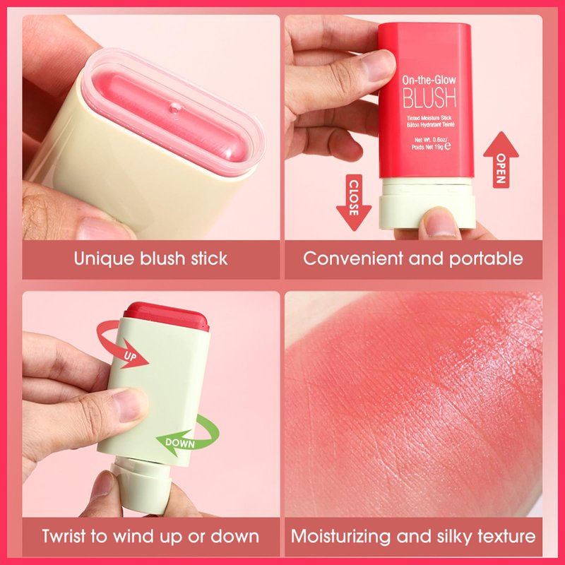- This cream blush stick's delicate and smooth texture effortlessly blends onto your cheeks, giving you a baby-soft and naturally moisturized color.