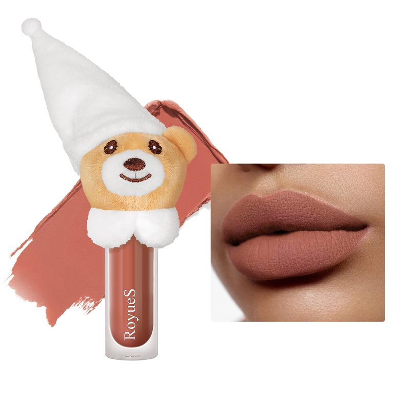 - Christmas Bear Matte Lip Glaze: The brand-new cute bear matte liquid lipstick has 8 colorful colors, and the interesting and exotic plush bear matte lip gloss appearance is matched with the refreshing matte velvet cream texture, which is easy to apply, fully covered with a touch, silky and comfortable to stay in place, and anti-transfer and anti-blooming matte lipstick.
