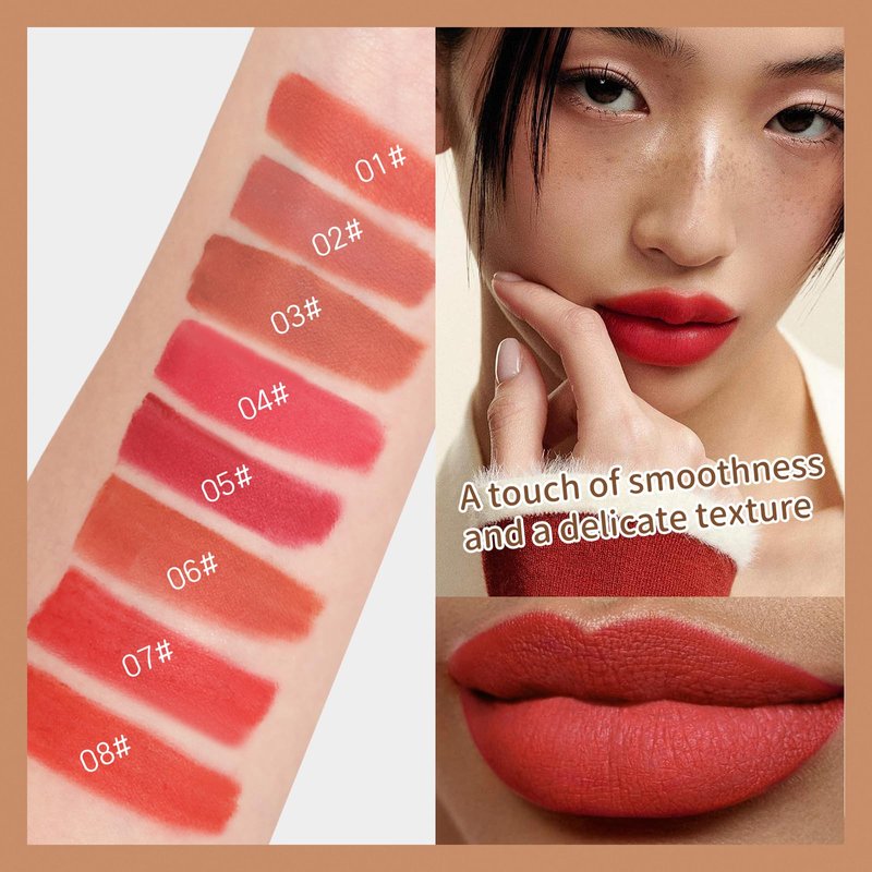 - Waterproof and Smudge-proof: Long-Lasting waterproof matte velvet lipstick, extremely subtle performance, light, dense and soft lip mud texture, instantly concealing lip lines, giving you rich and perfect lip makeup, natural plant waterproof formula, lipstick lasting for 24 hours,transfer-proof, matte lipstick that does not fade easily gives you a happy and beautiful smile all day.