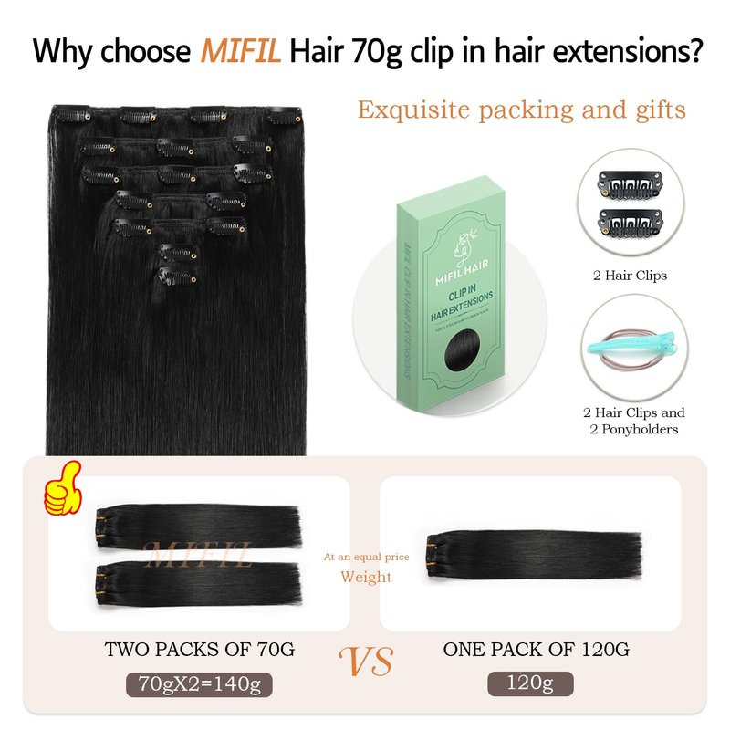 - 💕High Quality: Mifil Clip in Hair Extensions are 100% Human Hair.the Softness of the Hair Makes It Look Natural and the Ends of the Hair are Healthy Too,Just as Good as Your Own Hair.