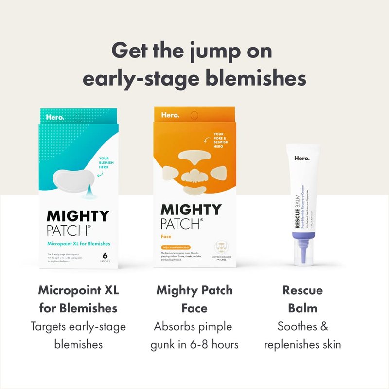 Mighty Patch Micropoint for Blemishes from Hero Cosmetics - Hydrocolloid Acne Spot Treatment Patch for Early Stage Zits and Hidden Pimples, 1,385 Proprietary Micropoints (6 XL Patches)