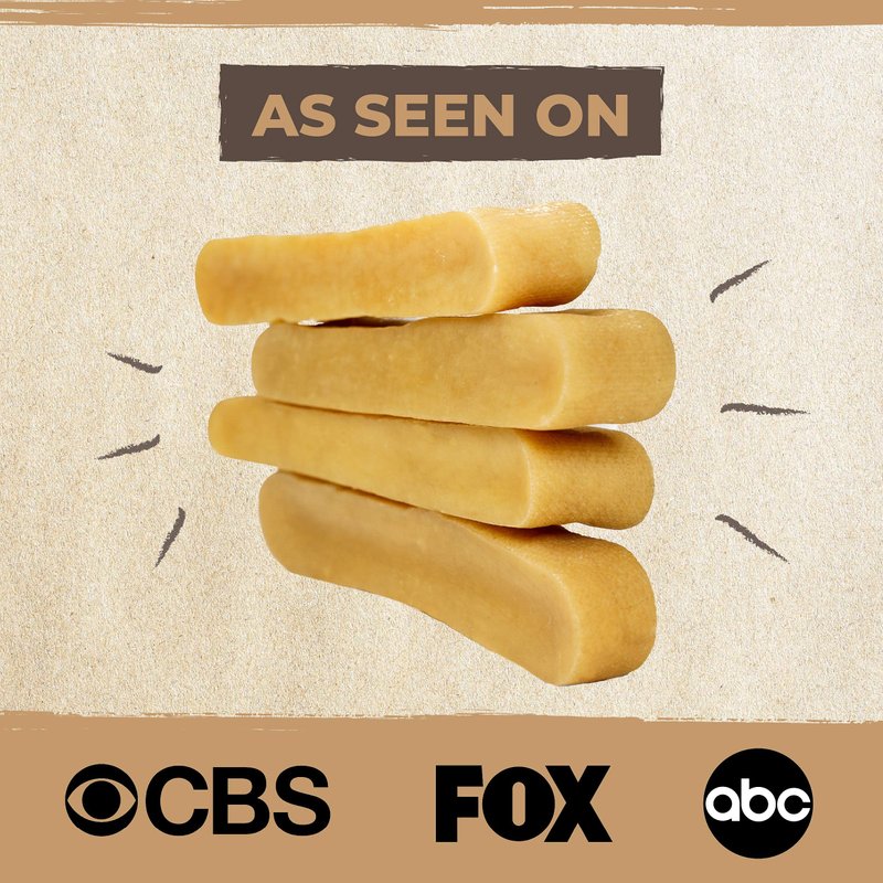 Mighty Paw’s All-Natural Yak Cheese Dog Chews are sourced in Nepal and hand-inspected in the USA. Each package consists of 4 cheese sticks, and is a great option for multiple dog households. The cheese sticks for large dogs are made with only 3 ingredients - all natural milk, salt and lime juice. They are fully digestible, lactose-free, grain-free, gluten-free, chemical-free, preservative-free, mess-free, smell-free, and - most importantly - guilt-free! They’re a great alternative to bleached rawhide chews. Offer your dogs natural, healthy chews instead! They’re also a wonderful option for dogs with sensitive stomachs and those with chicken, beef, pork & grain allergies. They’re extra hard chews, and are a long-lasting snack for teething puppies as well as bored or anxious power chewers up to 75 lbs. The Mighty Paw Cheese Sticks encourage chewing, which reduces tartar and plaque buildup on your dog’s teeth and gums. Our cheese chews are naturally rich in protein and calcium, which is great for healthy muscle growth as well as dental and bone health. 4 pack 100% all-natural, hard consistency, long lasting, boredom buster. Offers anxiety relief and promotes oral health *Warning: This product is to be used under human supervision and for dogs only. Always inspect the chews for any damage or cracking before EACH chewing session. Do NOT use if damaged. Consult your veterinarian before offering this chew or if you are unsure about its proper use. Mighty Paw cannot be held, in any situation, responsible for any harm caused by the use (or improper use) of this product.* dog chew toys for aggressive chewers, dog bones for aggressive chewers ,yak cheese himalayan dog chews, yak chews, dog chews for aggressive chewers, dog chew sticks, yak chew, yak cheese dog chews, mighty paw, mighty paw yak cheese dog chews, mighty paws yak cheese dog chews, mighty paw yak, cheese chews, mighty paw yak cheese, mighty paws yak cheese