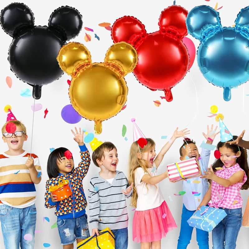 MIKIMIQI 4 Pcs 24'' Mouse Head Foil Balloons Birthday Party Balloon for Boys Girls Party Favors