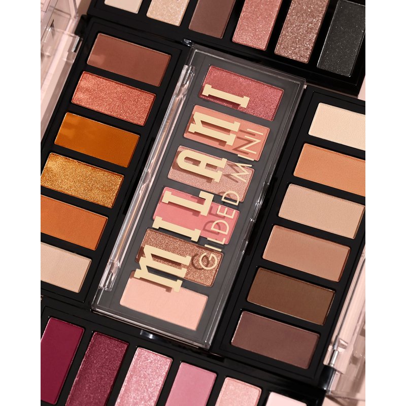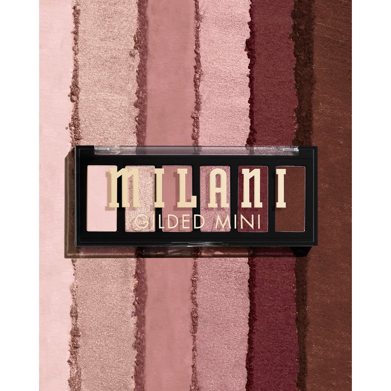 Milani's Gilded Mini 6-pan set of leveled-up, pressed pigment eyeshadow powder creates buttery, high-intensity shadows for major color payoff with minimal fallout. Each palette features a mix of 6 paired mattes and shimmers in ultra-wearable, seamless blend hues. Available in 5 color collections, these perfectly pigmented, long-lasting eyeshadows glide on easily. The compact case makes it perfect for on-the-go touchups as well as using as your go-to eyeshadow at home. Cruelty-free and certified by PETA, Milani does not test on animals and does not allow suppliers to test on its behalf. Use an eyeshadow brush (not included) to apply to ideal placement on eye, then fluff out, buff, and blend to your liking. Made in USA. Here to fuel your self-expression with products that make the exclusive inclusive, Milani delivers prestige quality products at affordable prices that fit the needs of every skin tone, look, and attitude.