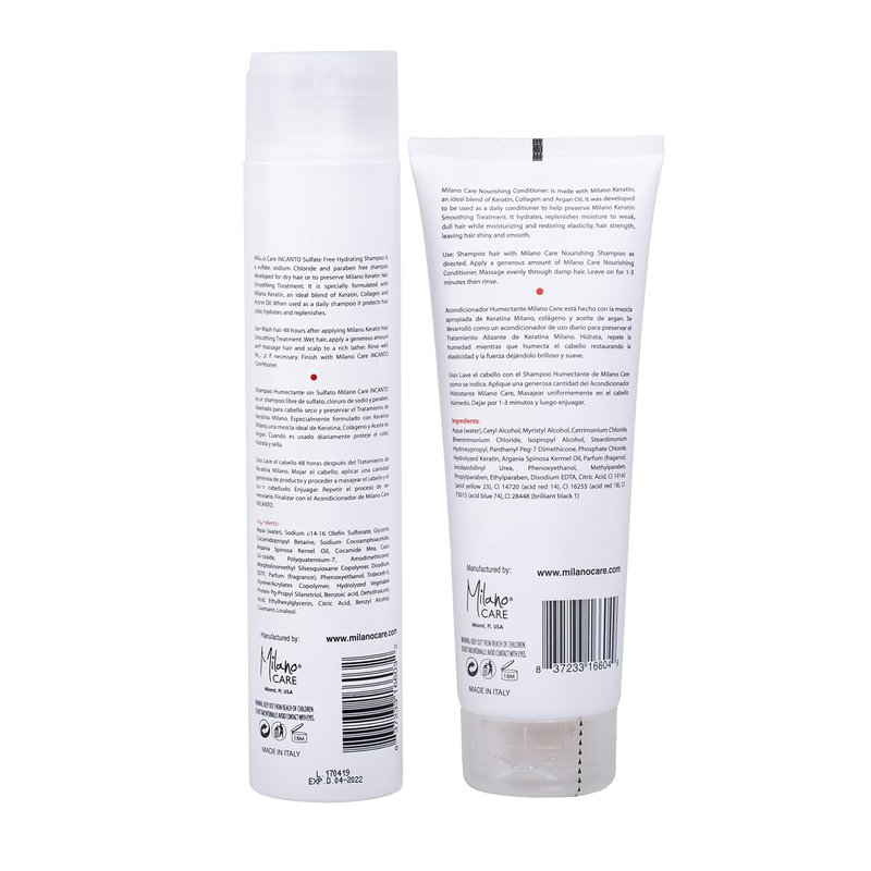 Milano Care Keratin Infused Shampoo and Conditioner Set, will nourish and moisturize dry, brittle hair and damaged hair. Formulated with hydrolized keratin protein and fatty-complex, and anti-agents ingredients to protect and strengthen the hair while providing it with extra moisture to enhance its natural beauty. Use Milano Care Keratin Shampoo and Conditioner to fortify and nourish your hair from root to tip and increase its elasticity and manageability. Milano Care for soft, silky and smooth hair. We love your hair!