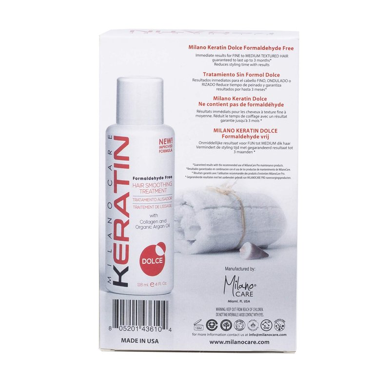 Milano Care Keratin Hair Smoothing Treatment - Professional Salon System with Clarifying Shampoo, Dolce 4 fl oz