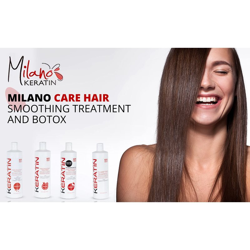 - HAIR SMOOTHING SYSTEM: Milano Care Hair Smoothing Treatment Kit includes a Clarifying Shampoo and Hair Treatment that infuses Keratin and Organic Oils deep into the hair cuticle to eliminate frizz and curl