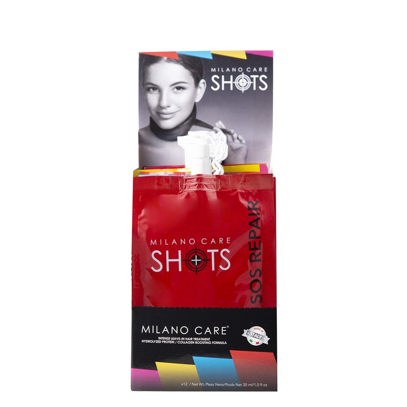 MILANO CARE SHOTS: Milano Care Shots are a range of targeted treatments formulated with Hydrolyzed Keratin and Biotin in a collagen boosting formula that will repair, rejuvenate and revitalize dull, dry and damaged hair, fast. Each leave in hair mask contains a powerful blend of vitamins and conditioning agents including Argan Oil and Shea Butter to deeply hydrate the hair, restore broken strands, and leave hair smooth, shiny, silky and tangle-free. Choose from 4 healthy hair goals: Keratin, Intense Shine, SOS Repair or Emergency – each deep conditioning hair packet contains a single powerful treatment to return your hair to its best luscious looks. Perfect for keratin treated, color treated, dry or flyaway hair, the damaged hair treatments have a non-greasy, weightless formula that nourishes and moisturizes as it straightens, softens and controls frizzy hair, improving overall manageability. These keratin protein hair treatments are ideal as a hair renewal conditioner to protect against hair breakage from thermal styling, chemical and sun damage. For best results, wash hair with Milano Care Nourishing Keratin Shampoo. Apply a small amount of the Milano Care Leave in Conditioner to towel dried hair. Massage from mid-lengths to ends and comb through to distribute evenly. Blow-dry for a smooth and sleek look, or air dry your hair for a gorgeous natural look. We recommended using the hair repair mask 1-2 times per week, and/or leaving it overnight to style the next day. Hair will be left looking smooth, radiant, glossy and healthy. With decades of experience in the professional hair care market, Milano Care have developed the ideal hair care line designed especially for keratin-treated, color-treated, very dry, or damaged and overly-processed hair. Based in the U.S., we have strong ethics, Italian high-quality standards and a focus on research and development to explore avante-garde technologies.