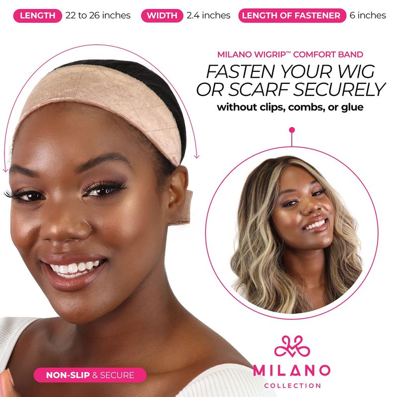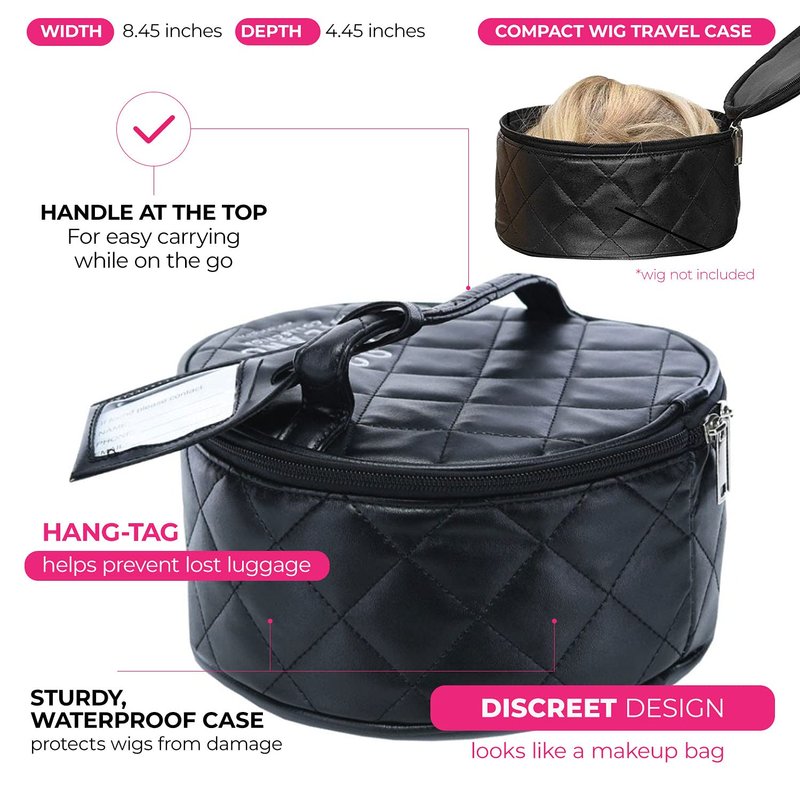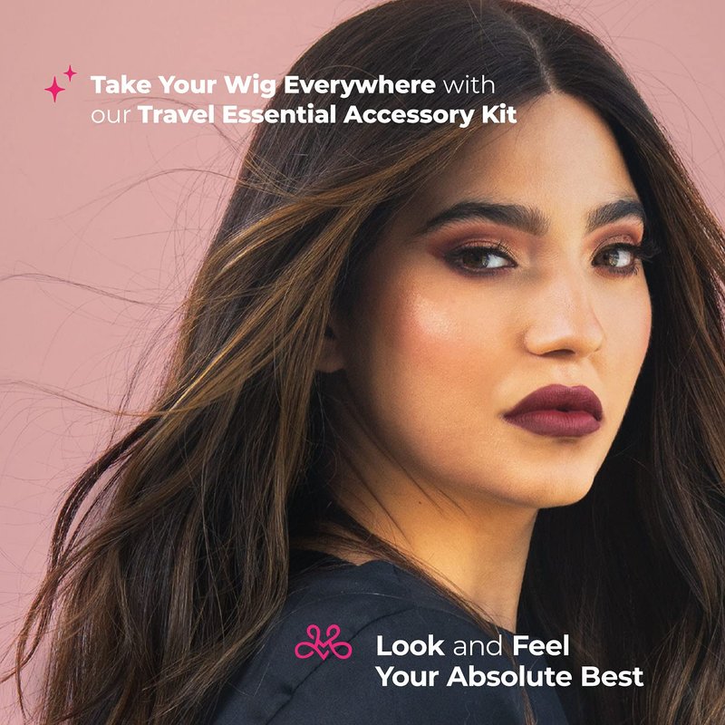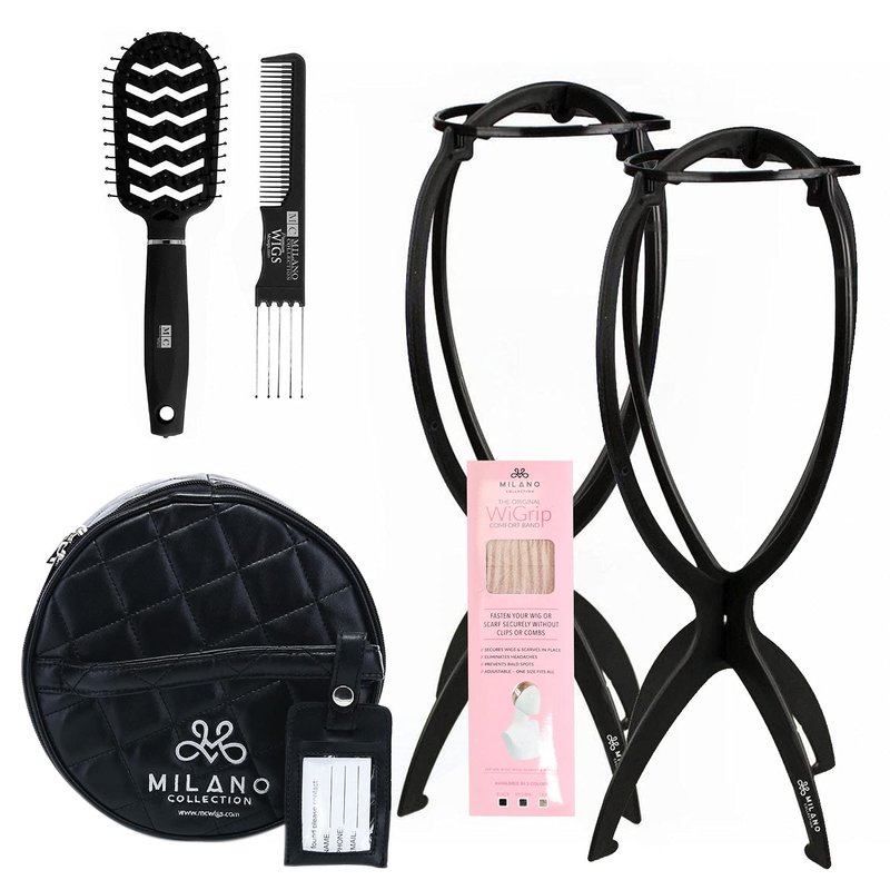 Milano Collection 4 pc. Travel Essential Wig Accessory Kit with Original Tan WiGrip Comfort Band, Round Travel Case, Brush Set, Tall Collapsible Wig Stand for Wigs, Frontals, Styling