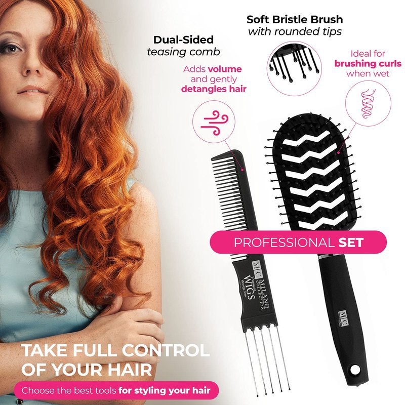 Milano Collection’s Value Set comes with a Black Plastic Wig Stand is a great alternative to traditional mannequins or wig heads for storing, styling and displaying wigs. This 14” Wig Stand is made of a strong yet lightweight plastic material and only requires three pieces for easy assembly. Its collapsible design can fold flat, which takes up minimal space for storage and travel purposes. A 9 pack nude nylon back and a professional brush and comb set are ideal for regular wig wearers and styling.