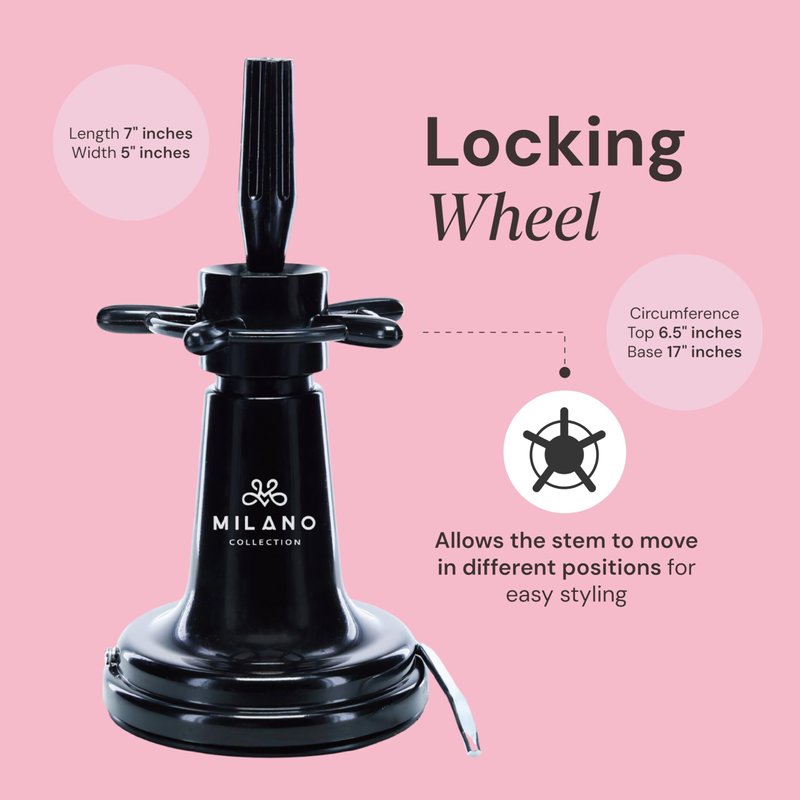 - MULTI-PURPOSE: Locking wheel allows the stem to move in different positions for easy styling. It can be used for wig styling or cutting your wig.