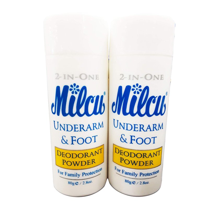 Milcu Underarm & Foot Deodorant Powder 80g per Bottle, 2 Pack