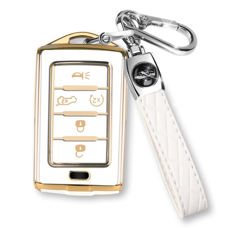 - 【High Quality】Our key shell is made of Premium Soft TPU, which is comfortable and soft, with excellent feel to the touch. The key fob cover has a strong color fastness with triple electroplating and is quite durable. Made of premium leather and aluminum alloy, the Keychain is less prone to fading and peeling.