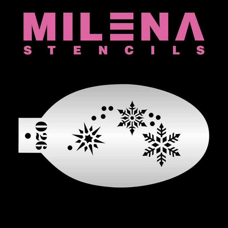 - SNOWFLAKES STENCIL: Milena stencil Design 26 features Snow Flakes design accents to your face painting. Great for adding designs around the eyes, on forehead, cheeks, chest, neck or arms of adults and children alike.