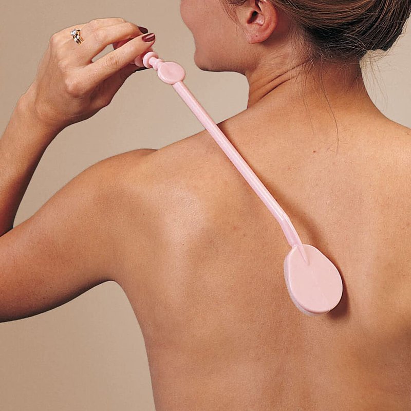 Easily slather sunscreen or moisturizer on back, shoulders or feet with this easy reach lotion applicator. Selfadhesive foam pad rinses clean quickly and peels off for replacement.