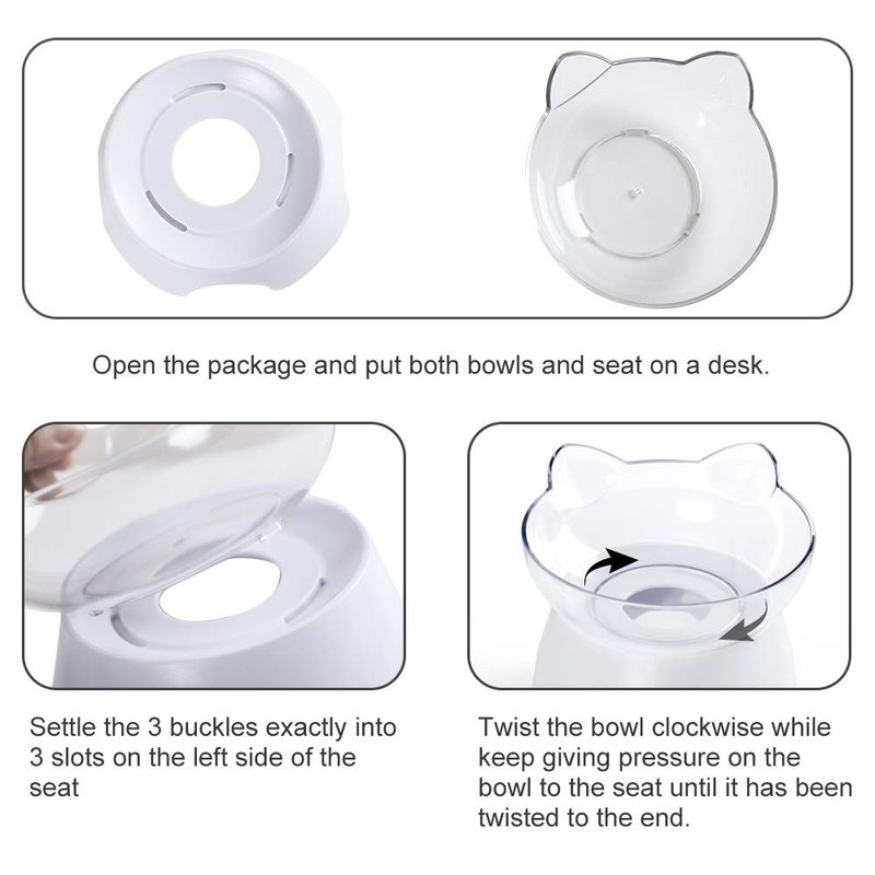 - 【Backflow Prevention】The elevated cat dog bowl put a pet's mouth at a better position in relation to its stomach, it helps cat swallow more easily and alleviates their occasional vomiting. Let the kitten grow healthy. Perfect for wet food, cat treat and soft food.