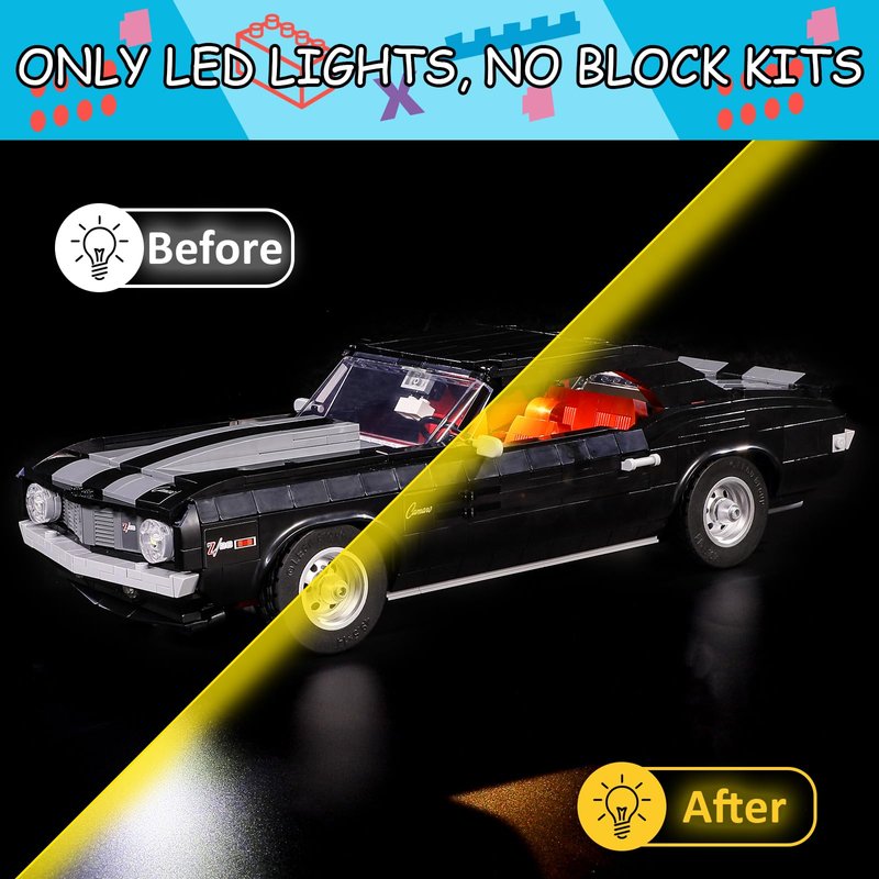 - 【DESIGNED FOR LEGO 10304】- LED lighting designed specifically for Lego 10304 Camaro Z28 set, with this lighting kit you can transform your building set from dark to bright, bringing it to life.(LED light only, Not Building Block Kit).