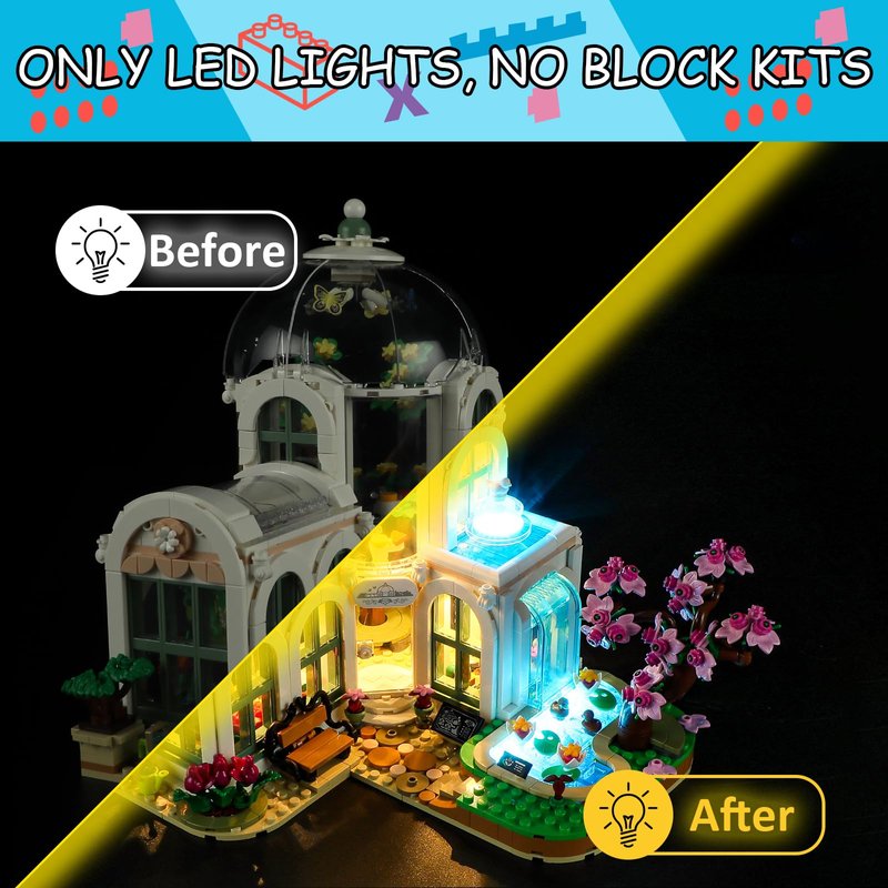 - 【DESIGNED FOR LEGO 41757】- LED lighting designed specifically for Lego 41757 Friends Botanical Garden set, with this lighting kit you can transform your building set from dark to bright, bringing it to life.(LED light only, Not Building Block Kit).