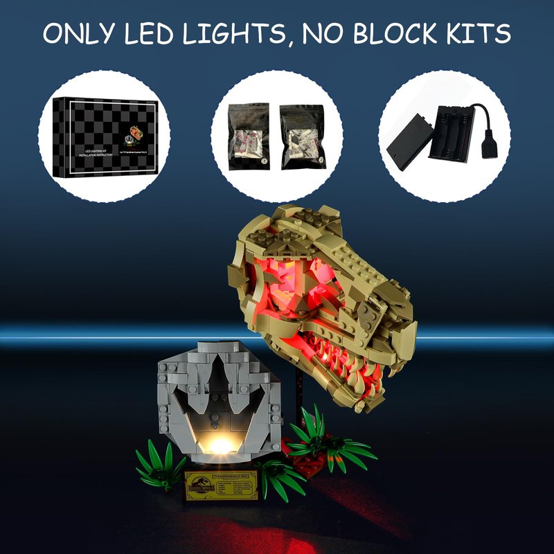 - 【DESIGNED FOR LEGO 76964】- LED lighting designed specifically for Lego 76964 Dinosaur Fossils: T. rex Skull set, with this lighting kit you can transform your building set from dark to bright, bringing it to life.(LED light only, Not Building Block Kit).