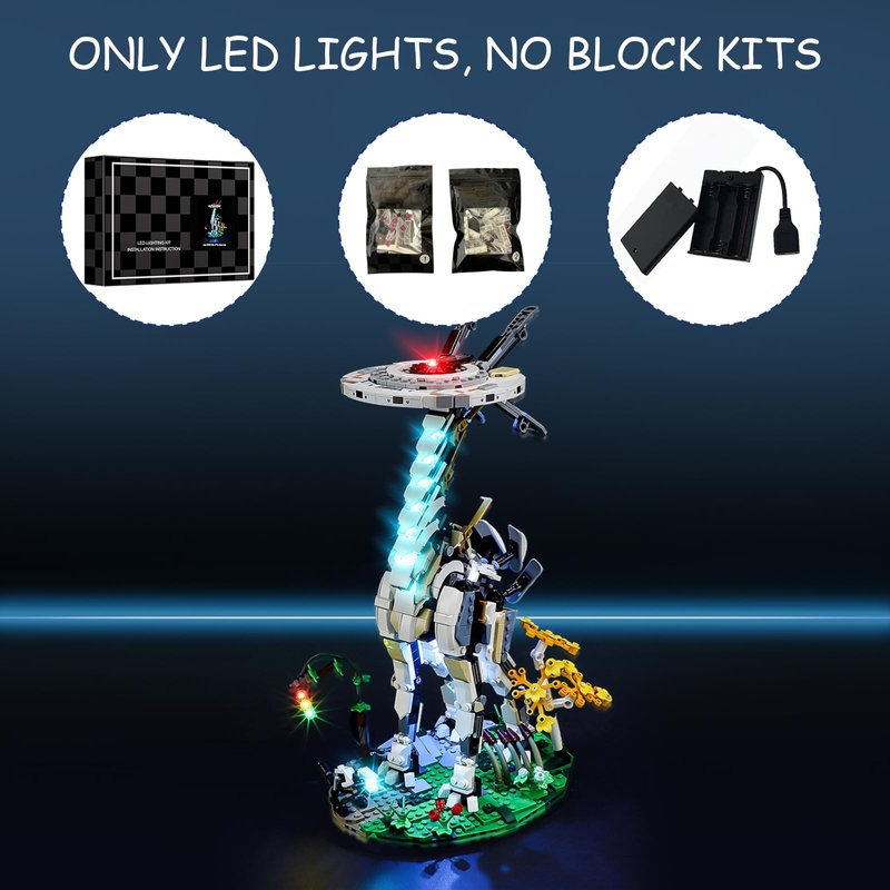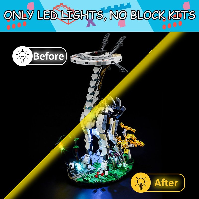 - 【DESIGNED FOR LEGO 76989】- LED lighting designed specifically for Lego 76989 Horizon Forbidden West:Tallneck set, with this lighting kit you can transform your building set from dark to bright, bringing it to life.(LED light only, Not Building Block Kit).