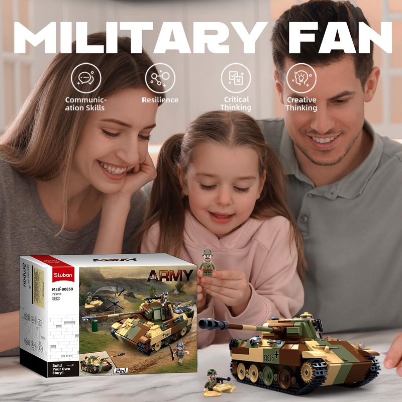 Military Tank Army Set Panther G Medium Tank 2IN1 Tank Model Toy Kits, Inspired WW2 Tank Brick Set, with 3 Soldier Minifigures, Gifts for Aged 6-12 Kids, Compatible with Lego, 725pcs