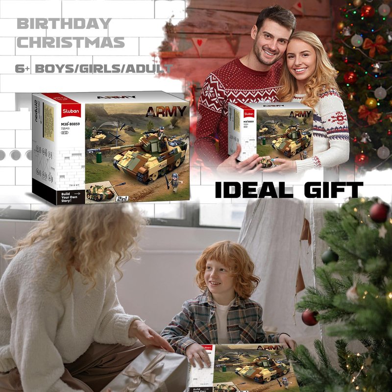 - 【Ideal Gift】This tank set seamlessly blends fun with creativity, with 725 pieces of toy blocks, a colorful gift box, and detailed instructions, it is a good gift choice for both children aged 6-12 years old and adults, such as sons, teenage nephews, boyfriends, husbands, military fans, and especially tank enthusiasts. It is perfect as a gift for Christmas, birthdays, New Year's, Easter, or any other special occasion.