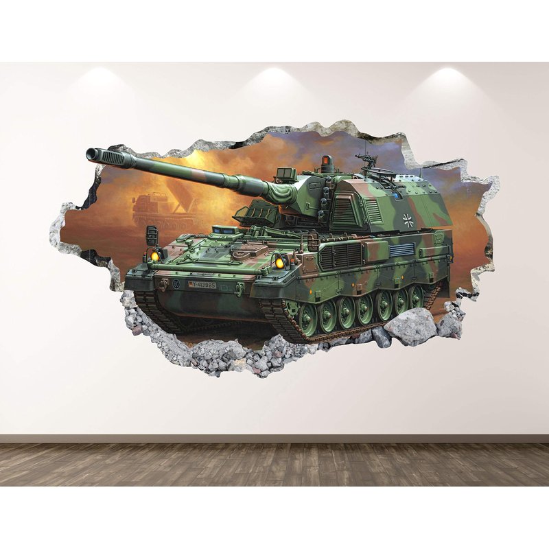 Military Tank Wall Decal Art Decor 3D Smashed Army Sticker Poster Kids Room Mural Custom Gift BL155 (50"W x 30"H)