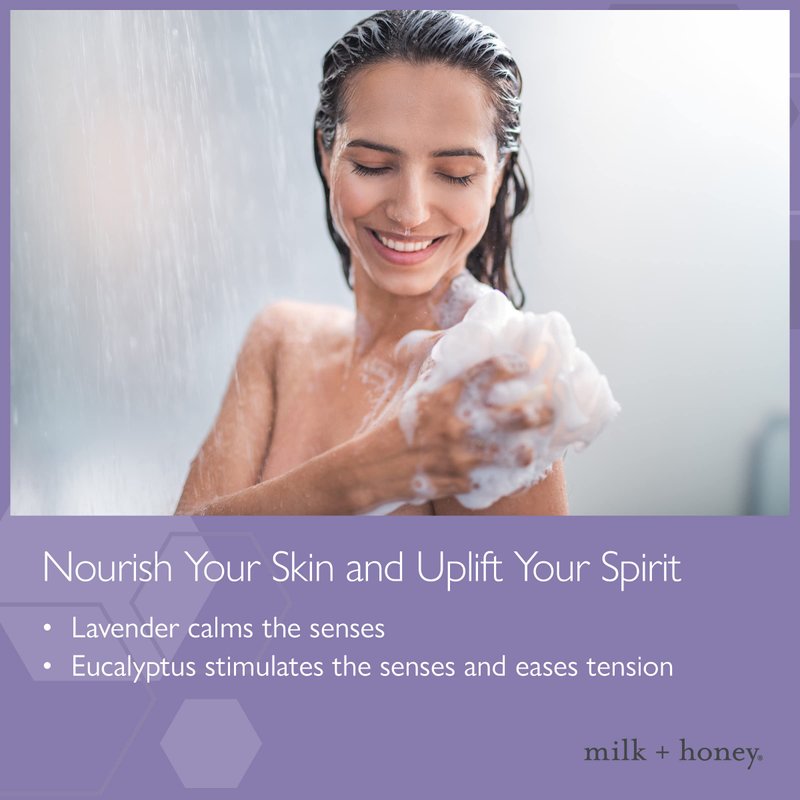 - NOURISH YOUR SKIN AND UPLIFT YOUR SPIRIT - Our milk + honey wash contains a calming blend of Lavender and Eucalyptus essential oils that soothes, eases, and stimulates the senses. Moisturize and clean your skin with our hyperclean body wash. Great for relaxing baths after a long day.