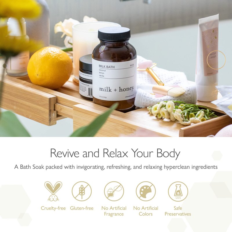 milk + honey Milk Bath No. 05, with Coconut Oil, Vanilla, and Lemon and Peel Oil, Moisturizing, Luxurious Milk Bath, 5.3 Ounces