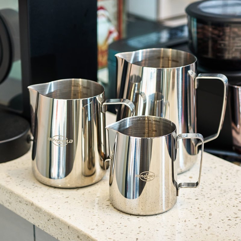 Milk Frothing Pitcher Espresso Accessories Milk Steaming Pitcher Stainless Steel Pitcher Latte Art Espresso Machine Cappuccino Coffee Milk Frother Cups Fashion & Durable The 304 stainless steel milk milk frother pitcher strong and durable, exquisite workmanship.non-rust,anti-corrosion unbreakable for daily use.Easy clean and dishwasher safe. Humanization Design After many experiments, we made a unique narrow mouth design for the milk frothing pitcher , so that the liquid can be easily drained without spilling to the outside,equipped with a latte art pen, can create a variety of beautiful patterns. Hand-held handle doesn't get hot, it helps you concentrate on the latte art and no worry about getting hurt. Wide Application The stainless steel milk steaming pitcher be used for steaming milk cream, measure oil, vinegar, soy sauce, serve milk and cream. Ideal kitchen container tool for home, restaurant, cafe, and hotel. This milk steamer cup is also a nice gift to your friends birthday, parties or festivals. Convenience If you have any questions about our products, please don‘t hesitate to contact us. We ensure you a happy purchasing experience with us.