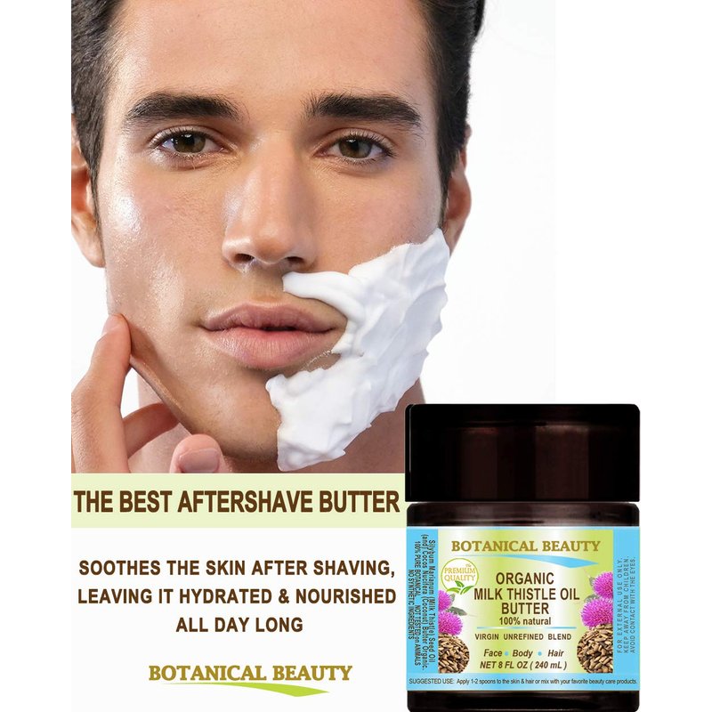 - MILK THISTLE OIL BUTTER is so rich with Silymarin skin-enriching vitamin E, vitamin B complex and linoleic fatty acids that it is currently considered to be the best oil for natural, anti-aging skin care products with restorative properties for DRY / MATURE skin types.