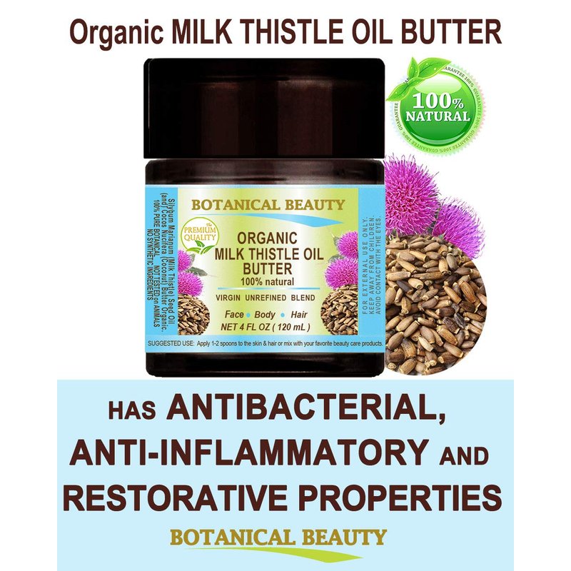 - MILK THISTLE SEED OIL BUTTER Silybum marianum is 100% Pure Botanical 100% Natural with no additives. Milk Thistle, also known by many other names such as Marian thistle and Scotch thistle. Used for thousands of years for its moisturizer properties, Milk Thistle is great for the body and skin.