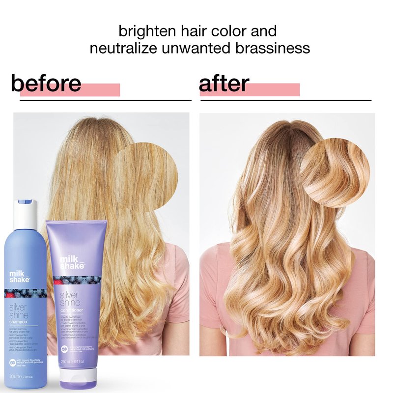 milk_shake Silver Shine Purple Shampoo 10.1 Fl Oz + Silver Shine Purple Conditioner 8.4 Fl Oz - Blonde Shampoo and Conditioner for Brassy Hair